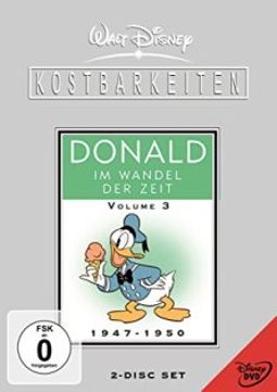 Donald Duck, der 2004 seinen 70. Geburtstag feierte, zählte in den 40er und 50er Jahren zu den beliebtesten Disney-Charakteren überhaupt. Er war sogar populärer als Micky Maus und kann auf ein wahrhaft meisterliches Oeuvre zurückblicken, aus dem der dritte Teil von Donald – Im Wandel der Zeit 30 ausgewählte Kostbarkeiten aus den Jahren 1947 bis 1950 präsentiert: der Hochzeit des Zeichentricks, als sich Donalds Ruhm auf dem Höhepunkt befand.